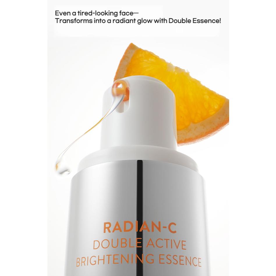 LANEIGE Radian-C Double Active Brightening Essence is a dual-formula brightening essence designed for day and night use, enhancing skin clarity and glow.