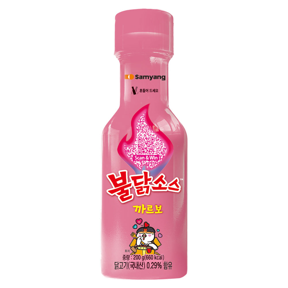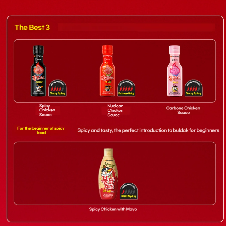 The standard version of Samyang’s spicy chicken sauce, known for its bold heat and savory flavor combination.